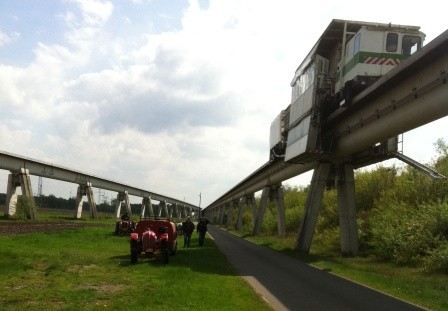 Erster Stopp war am größten Pflug Norddeutschlands am Moormuseum. Groß- und Kleinfullen erlebten wir ebenso im Veteranenrausch wie das Naturschutzgebiet Tinner und Stevemer Dose. Die leider ausgediente Magnetschwebebahn, vor ihrem Abriss, noch einmal in fast voller Länge zu erleben, mit den mächtigen Betonstützen und der riesigen Weiche, war schon ein beeindruckendes Bild.