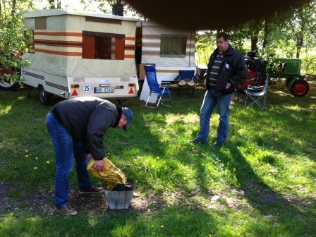 In der Nähe von Rütenbrook fanden wir, dank meines Namensvetters und seines Arbeitskollegen, ein tolles Quartier an einem riesigen Areal von Teichen und Hütten. Nach dem wir den 95-jährige Aufseher überzeugen konnten, das wir eine Erlaubnis hatten, war bis auf den Gesang der Kröten eine Ruhe eingekehrt, die das Nachdröhnen unserer Traktoren allmählich verstummen lies.