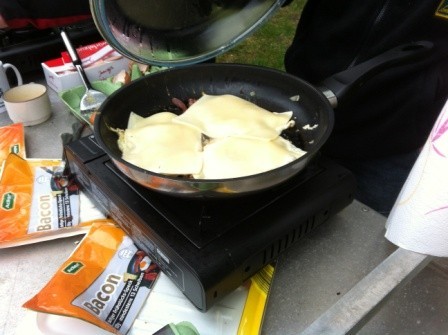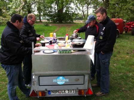 Am nächsten Morgen gab es erst einmal eine Unterweisung von Thomas in der großen Kunst des Himmelfahrtfrühstücksspezial“ (cross gebratener Schinken mit in der Pfanne gerösteten Toastscheiben und mit Frucht vom Huhn und deftigem Käse überbacken) – Eine echte Sensation - Schade das man auf Bildern nicht riechen kann.
